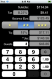 • I've tried several, and I really think this is the best one out. You may think it doesn't have the best appearance, but it is quite fully-featured. You can easily tip before tax, and the stars feature allows you have three predefined tipping levels so you can vary your tip easily according to the service you received. All of the variables are visible on the main page, so there are no pages to flip through. You just select the different boxes, and enter your bill amount (subtotal or total), tip percentage, and splitting if you desire. Everything updates in real time. Also, rounding is VERY EASY. You can round either the tip or the total and it can be either up or down. Furthermore, the tip percentage UPDATES when you round, so you know exactly what percentage you're tipping. Splitting is a breeze, too. You can enter the total guests, and then turn it sideways to adjust the bill amounts if some people didn't drink or ate a more expensive meal. Great app!