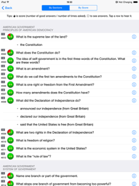 • The official American English audio voice for each question and answer to reproduce the condition of the oral USCIS test.